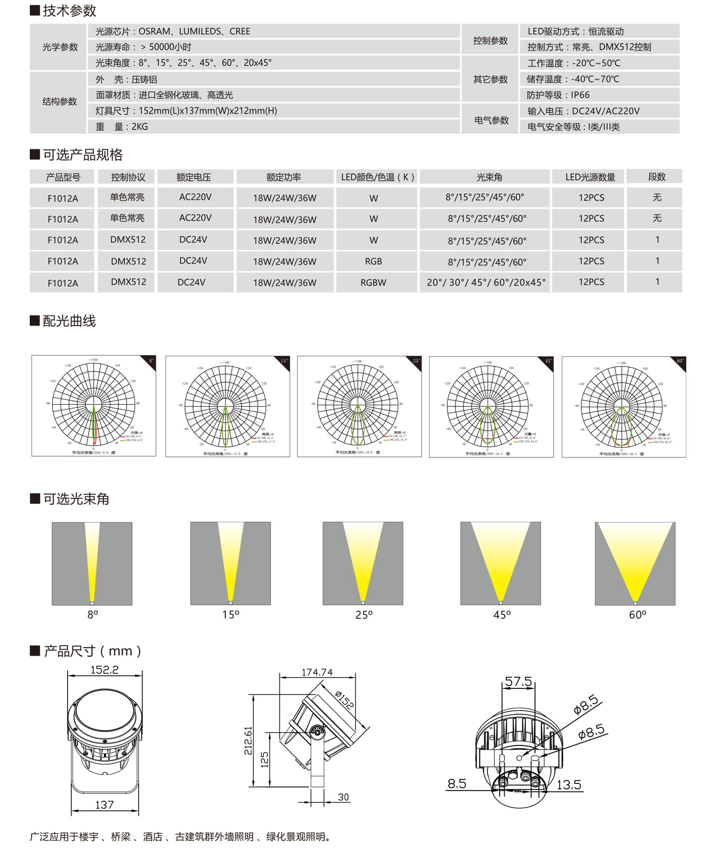 2.CREE XM-L RGBW四合一光源,光色變化豐富,白光純正,多角度配光可選
