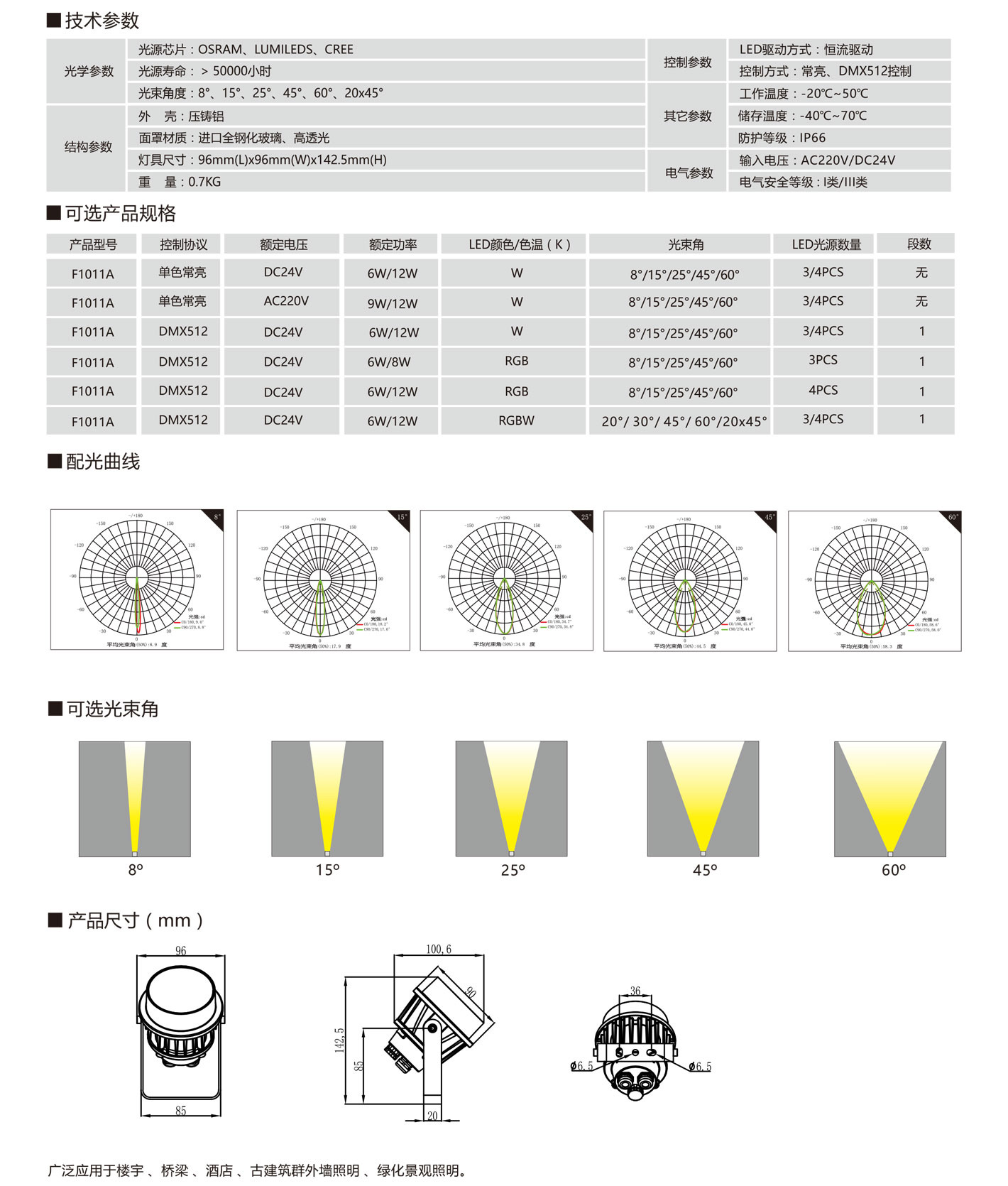 2.CREE XM-L RGBW四合一光源,光色變化豐富,白光純正,多角度配光可選